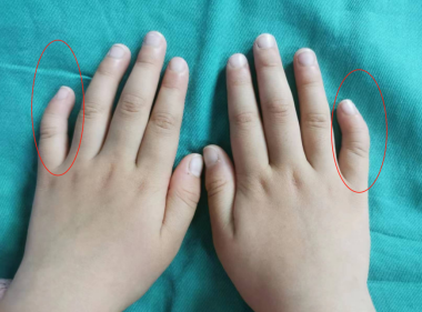 我院小儿骨科的李甲主任近日收治了一名患有斜指畸形的4岁女童。据女童妈妈描述,孩子出生时就发现其双手的小手指长得歪歪的,当时想着也不是大问题,一直没有就医。直到孩子上了幼儿园,才发觉小指弯曲程度加重,担心日后会影响孩子的正常学习,就想着来医院瞧瞧。女童妈妈还告诉李主任,女童的妹妹双手小指也是歪的。