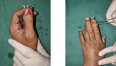 由于指端血管较细,血管内径基本都是0.3-0.5毫米,肉眼几乎是看不见的,再植难度非常大,一般的再植器械无法完成,必须启用我院特色的超级显微外科技术,在高倍显微镜下手术视野更清晰,医生操作更顺利,手术时间短,患者出血少。手外科医生团队在高倍显微镜下为患者吻接断裂的血管、神经和肌腱,手法复位骨折断端并进行内固定。经过一段时间的换药和观察,部分先手术的患者断指顺利成活,已经出院。