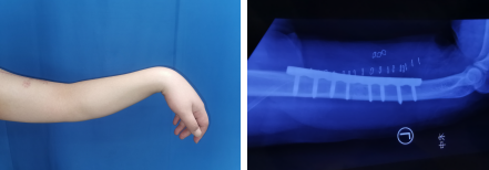 时间转回到一年多前,李师傅骑车时被转弯的小轿车撞倒,在当地医院就诊时发现李师傅的上臂肱骨骨折了,对其进行骨折复位钢板内固定的手术。可是术后李师傅发现他的右手和手腕仍然不能伸直,其实这是桡神经损伤的表现。