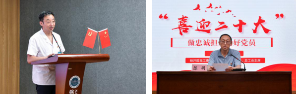 经开区党工委副书记、管委会副主任、总工会主席陈明讲专题党课《喜迎二十大 · 做忠诚担当好党员》。