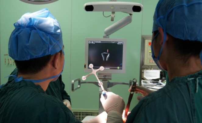 “常规的膝关节置换手术通过髓腔外定位,更依赖手术医生的经验进行关节置换,这就难免会有误差,而现在我院做这类手术,可以选择通过计算机导航来进行定位,其精准度更高,可以为患者带来更好的下肢力线和相关治疗体验。”