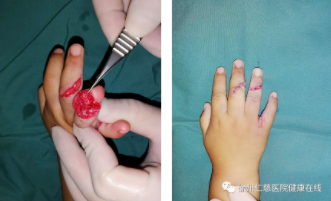 齐伟亚、熊祖国手术团队先为俊俊的伤处进行了清创处理,然后把环指的骨折复位固定,找到损伤的血管神经并接上,2小时手术顺利结束。
