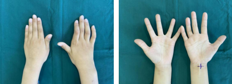 来我院就诊时轩轩已经出现了明显的尺神经损伤表现:右手呈爪形手状,环、小指不能屈曲,感觉麻木;本来活泼调皮的轩轩,因为右手变得不一样,开始逐渐内向、也不爱笑了。