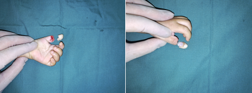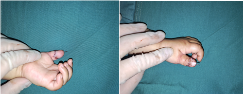 接诊的孙医生见乐乐的左拇指自远节基底完全离断,离断指体苍白、冷瘪;随即告知乐乐妈妈孩子年龄小,手术需在全麻下进行,急诊紧急安排手术,在大夫们精心3个小时的手术下,乐乐断掉的手指头终于被接回去了。