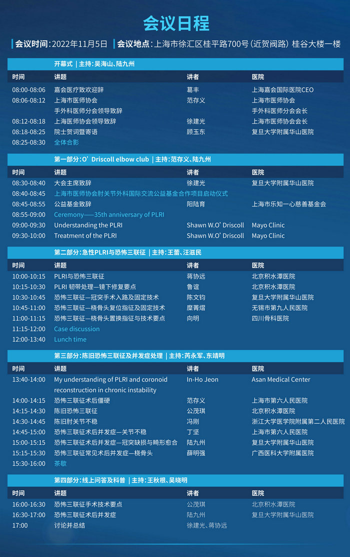 2022年11月5日,“2022海上肘关节论坛&上海市医师协会手外科医师分会学术沙龙”将在上海举办。