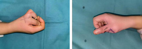 李甲主任介绍,拇指多指畸形一般需手术矫正,需要整形外科理念和显微外科理念。其目的是尽可能地重建一个功能和外观良好的拇指;这样的拇指应该有良好力线、关节稳定,良好活动范围和适当大小的拇指。