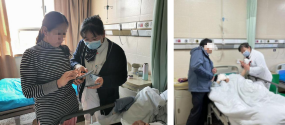 患者办理入院后,健康管家会主动到病床边,与患者建立微信联系,对于患者的问题进行答疑。参加医疗护理床边查房,为住院患者提供健康宣教,指导功能锻炼。深入了解患者所需,及时发现服务中的问题并及时解决。