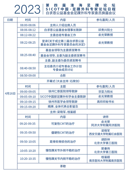 春山如笑,桃李争妍,暖春四月,我们在华夏九州之一,文化历史悠久,素有“五省通衢”的徐州,隆重举办2023年第四届淮海足踝论坛暨SICOT中国足踝外科专家论坛、白求恩公益基金会足踝外科专家委员会换届会议!