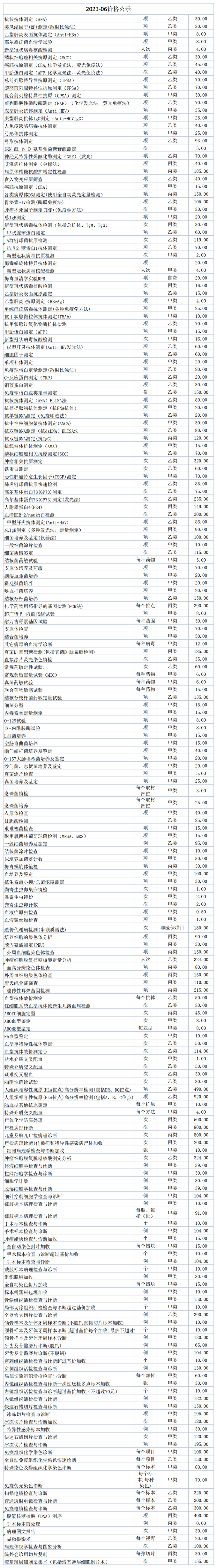 为规范医院的收费行为,医院所有药品、医用材料和医疗服务价格,必须按照国家、省、市物价部门规定的价格执行,并进行公示,2023年6月价格公示内容如下: