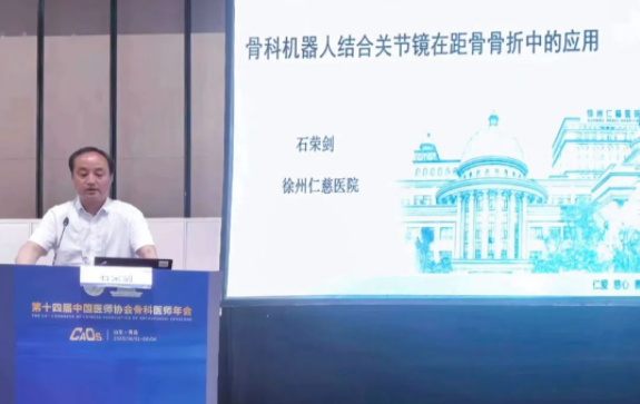 betway在线登陆业务院长石荣剑作《关节镜复位联合骨科机器人置钉治疗距骨骨折》专题演讲。