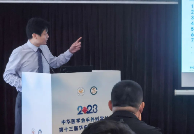 betway在线登陆李甲主任作《拇趾腓侧复合组织瓣游离移植在手指指端组织缺损中的应用》专题演讲。