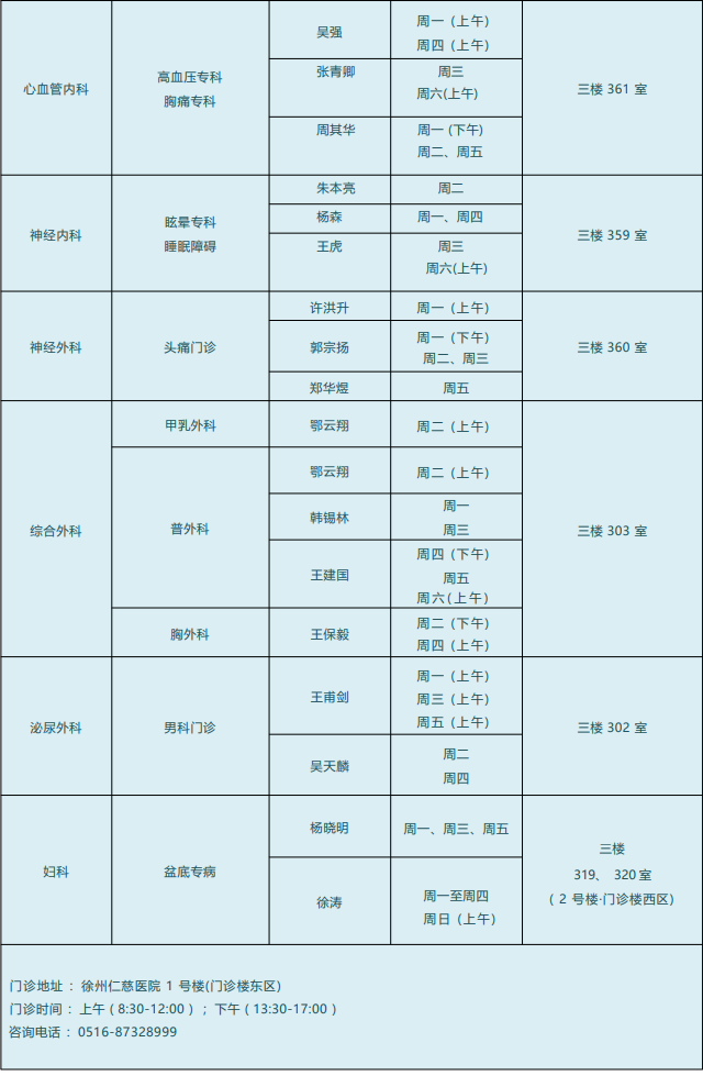 注:上述信息,以当日门诊出诊安排为准。