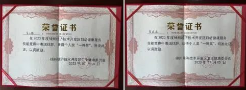 本次竞赛由市卫生健康委、市总工会联合主办,设置了母婴安全保障技能专场、宫颈癌防治技能专场、儿童眼保健技能专场,分别包含综合笔试、技能展示和知识竞答三部分,我院妇产团队参加了“母婴安全保障技能专场”和“宫颈癌防治技能专场”。竞赛中,我院妇产团队成员沉着冷静、胆大心细,最终凭借扎实的专业能力斩获5项大奖:产科医生李小艳、儿科医师黄瑶瑶两位医师均荣获个人一等奖,妇科医师周瑶瑶、助产士李俊潮荣获个人三等奖;团体荣获一等奖。