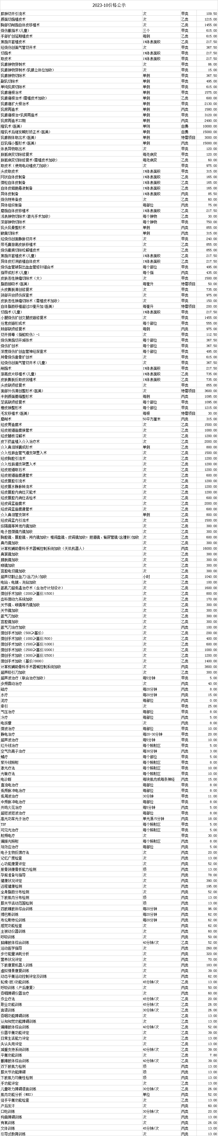 为规范医院的收费行为,医院所有药品、医用材料和医疗服务价格,必须按照国家、省、市物价部门规定的价格执行,并进行公示,2023年10月价格公示内容如下: