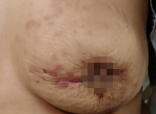 手术方式的选择是乳腺癌切除即刻重建还是延期重建?毕竟失乳带给女性心理的伤害将会是沉重而又深远的。潘勇副主任医师结合乳腺癌治疗的新进展、保乳手术和乳房重建手术的治愈率几个方面的实际数据,和患者耐心讲解乳房重建手术的利弊,看见其他病友乳房重建术后复查的照片,坚定选择了做乳房重建手术。