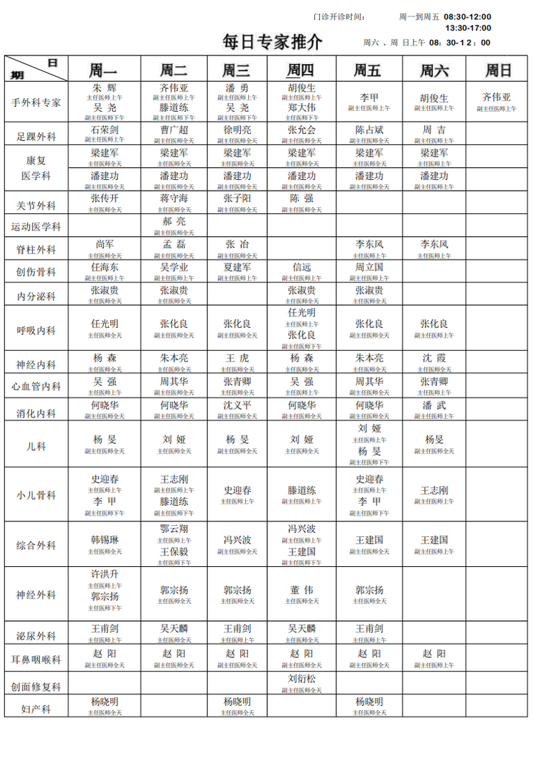 注:专家门诊安排如有临时变动,以院方当日公布为准。