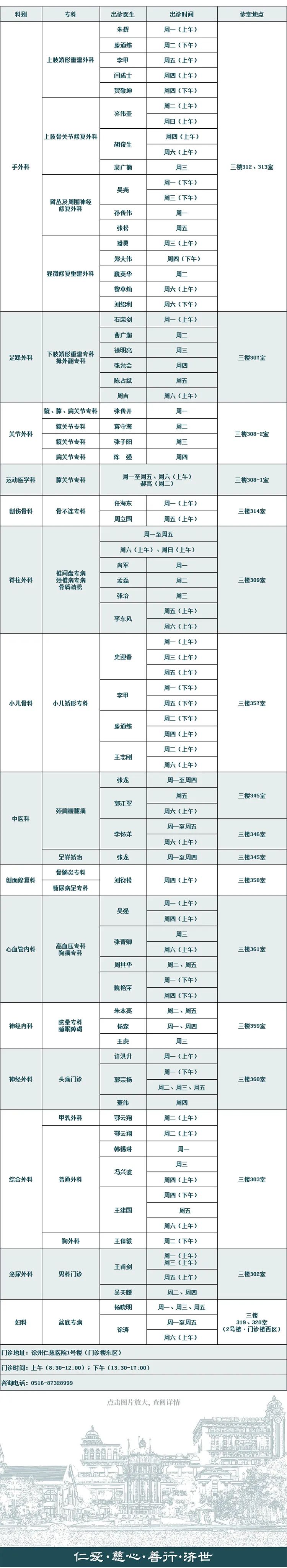 注:专家门诊安排如有临时变动,以院方当日公布为准。