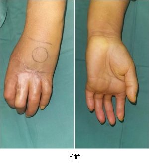 近日,徐州本地籍50岁的曹大姐1年前因机器绞伤右手,导致严重瘢痕挛缩,严重影响其生产及生活,经多方打听后来到:betway在线登陆显微修复重建外科,找到了betway在线登陆显微修复重建外科郑大伟主任和方杰主治医师,郑主任和方杰主治医师在为患者检查后,观其右手瘢痕挛缩明显,且伴有伸肌腱缺失,了解其外形要求较高,同时考虑到术后功能,感觉及外观问题,结合患者意愿为其进行了游离股前外侧皮瓣携带阔筋膜重建伸肌腱为其恢复手部功能。