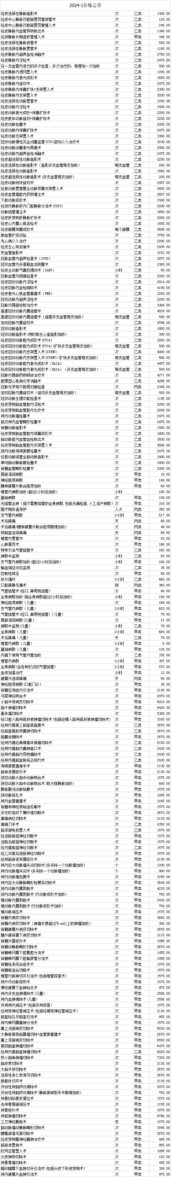为规范医院的收费行为,医院所有药品、医用材料和医疗服务价格,必须按照国家、省、市物价部门规定的价格执行,并进行公示,2024年1月价格公示内容如下: