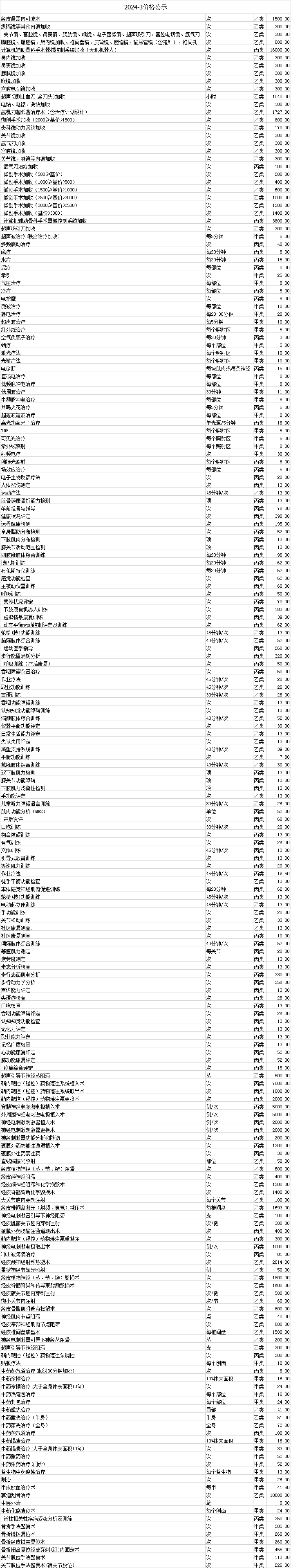 为规范医院的收费行为,医院所有药品、医用材料和医疗服务价格,必须按照国家、省、市物价部门规定的价格执行,并进行公示,2024年2月价格公示内容如下: