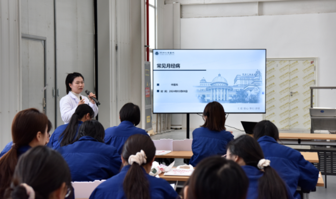 随后,我院中医科程晨医生为女工们带来了关于常见月经病的健康讲座,并现场为大家进行中医诊脉、调理指导,现场气氛热烈而融洽,为女工们带来了实实在在的健康服务。