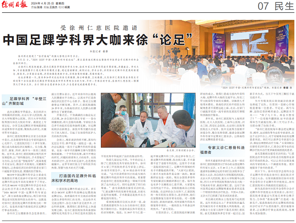 4月21日,“2024 SICOT中国·足踝外科专家论坛”、第五届淮海足踝论坛暨徐州市医学会手足踝外科年会在徐州举行。