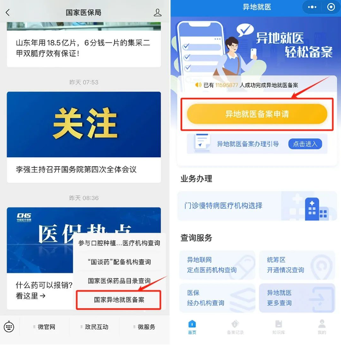 为了给参保人提供更为便捷的服务,国家医保局微信公众号目前已开通异地就医备案办理功能。符合条件的参保人只需简单几步操作,即可完成跨省异地就医备案,并在异地就医时实现直接结算。