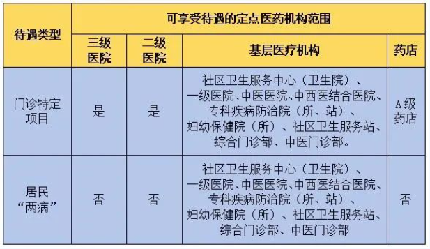 (2)门特、居民“两病”可享受待遇的定点医药机构范围: