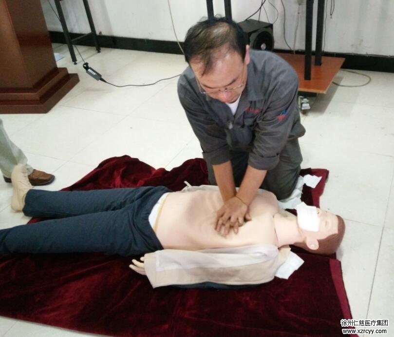 职工们学习并亲身体验如何进行心肺复苏
