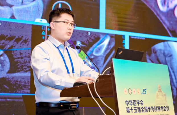 齐伟亚作《腕关节镜联合机器人导航治疗经舟骨月骨周围脱位》发言。