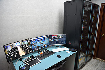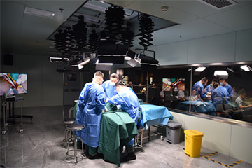 临床解剖实验室与医院手术室可实现音像数据双向实时传输,对手术全过程进行现场直播,实现在视听教学会议室、多媒体直播示教室和空中花园直播会议室与手术室的“四室互动教学”,通过网络数据传输各会议室学员可与手术室示教导师进行互动提问,解决传统示教障碍,提升教学效率,能同时满足300人的示教学习。