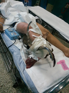 前天下午4时30分,一名右小腿血肉模糊的男子被推进必威官方首页官网betway急诊室。