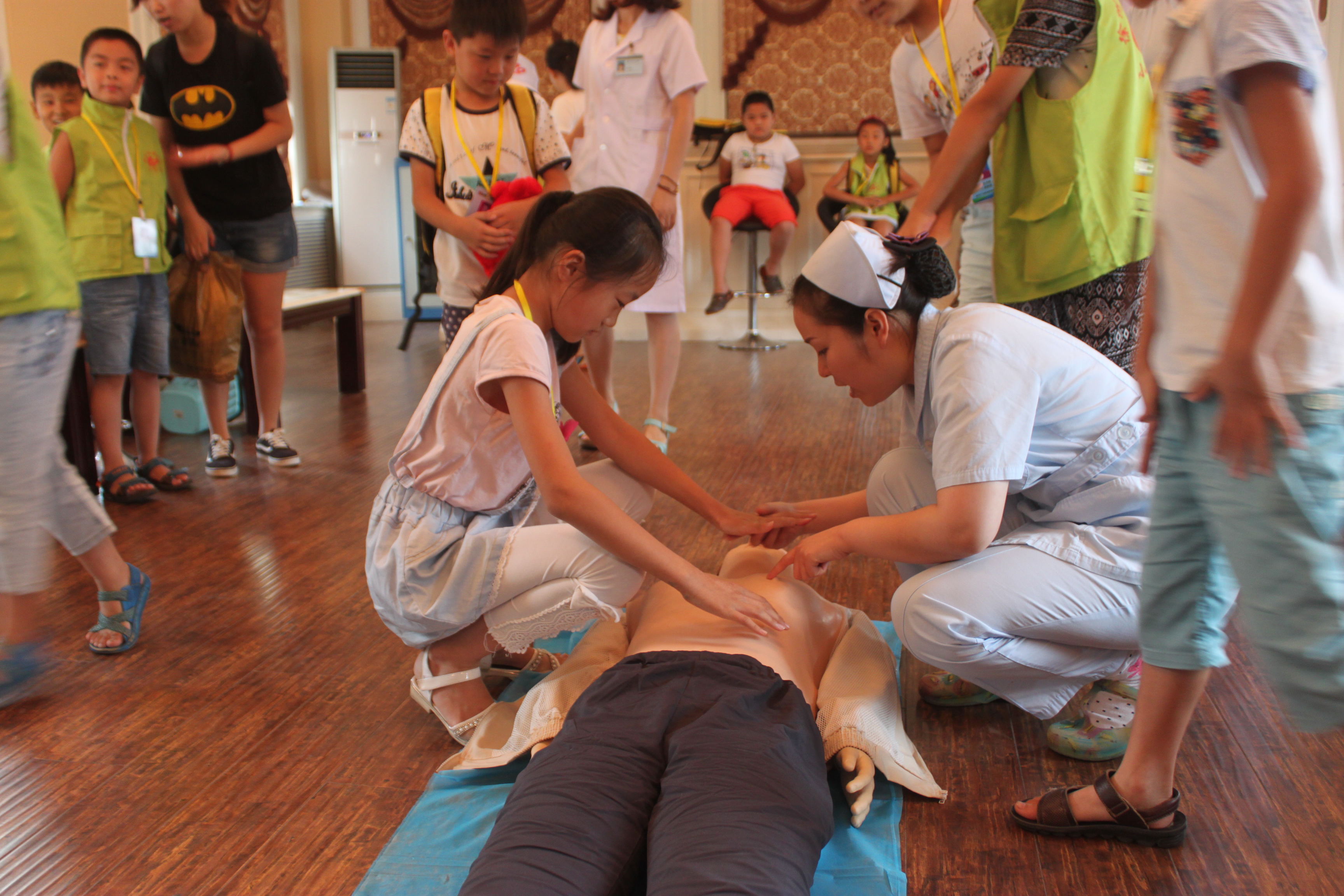 最后,大家来到体检中心,8病区孙护士长和医护人员为大家讲解了心肺复苏法,并利用人体模型模拟现场急救,受到了小记者们的欢迎,许多小记者瞪大双眼新奇又紧张地看着医护人员专业的演练,并积极踊跃地加入其中,亲身体验,学着护士长演示的动作认真的尝试,通过这次特殊体验,小记者们学到不少医学急救知识,有利于他们在以后遇到相似情况时,能够将在这里所学到的知识转化为实际行动,对需要救助的人实施合理的救助。