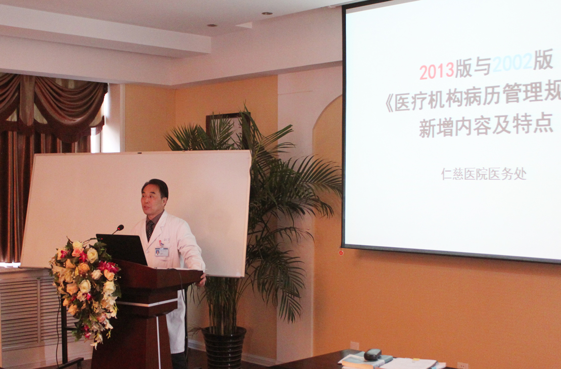 整个培训历时两个小时,医务处石怀玉主任对2013版病历管理规定进行了全面的讲述与解释,着重强调了病历借阅与复制、病历封存与启封等内容新旧版规定的不同之处,向参加培训的医护人员强调了病历质量的重要性。
