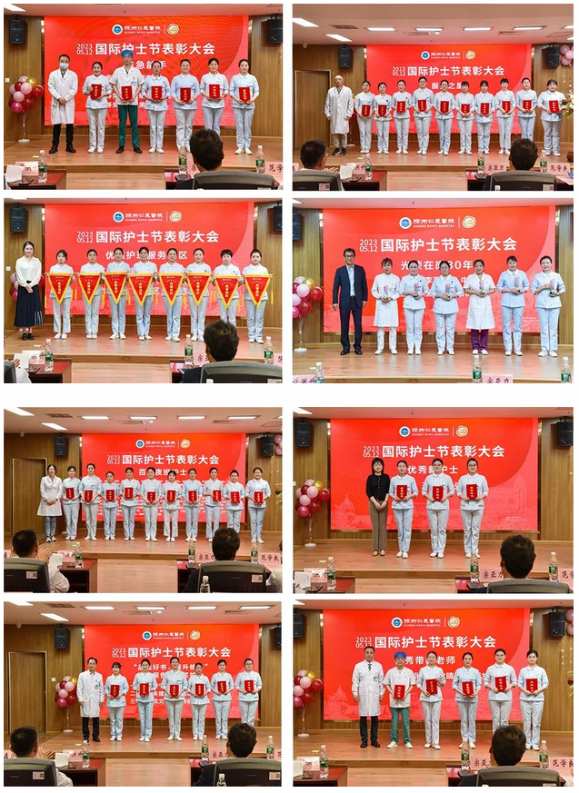 许洪升副院长致辞,并宣读5·12护士节表彰决定,对王怡方等6名“优秀新护士”、曹宁宁等5名“品读好书、提升修养”读书报告会获奖者、李爽等5名“优秀带教老师”、朱琳等10名“服务之星”、张馨宇等7名“应急能手”、韩芳等6名“30年护龄护士”、176名“百日夜班护士”、VIP产科病区等5个“五星优质护理服务病区”、六病区等3个“三星优质护理服务病区”进行表彰,希望他们在以后的工作中继续发扬成绩,为医院发展再立新功。