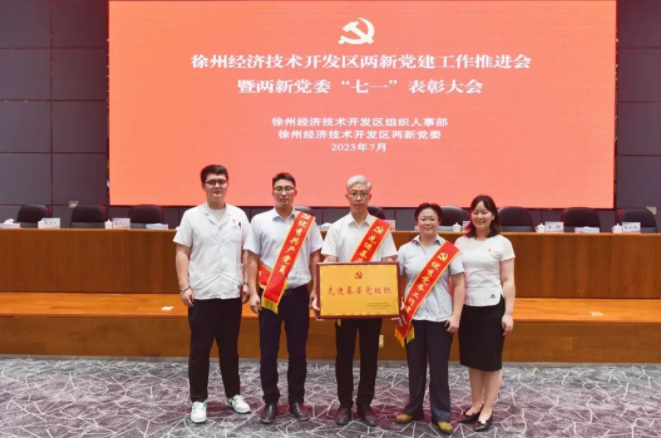 时值七月,夏意正浓。为庆祝中国共产党成立102周年,充分展现先进典型的精神风范,充分展示广大党组织和党员在各条战线、各个领域、各项工作中取得的丰硕成果,7月7日上午,徐州经济技术开发区两新党委召开“两优一先”表彰会,向受表彰的优秀党员、优秀党务工作者和先进基层党组织颁发证书、奖章。