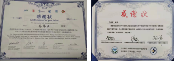 因腕关节镜技术精湛,到了2019年,齐伟亚主任从学员化身为导师。2019年,他在由世界腕关节镜学会、亚太腕关节医学会、香港手外科医学会和北京积水潭医院联合认证的2019年北京国际腕关节镜学习班高级课程中担任培训导师。2021年,他在由北京积水潭医院和深圳市第二人民医院主办,亚太腕关节学会、香港手外科医学会认证的2021年第三届京港粤腕关节镜学习班中担任培训导师。同年,他又在由中国医师协会手外科医师分会主办、无锡市第九人民医院承办的第四届腕关节镜学习班担任操作导师。齐伟亚的腕关节镜技术,得到了业界的认可,很多同道向他请教,他从不吝惜半分,总是不厌其烦地指导操作。