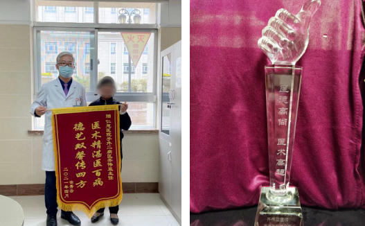 患者赠送的锦旗和奖杯