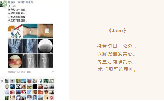 齐伟亚主任微创做桡骨远端骨折钢板内固定在国内赫赫有名,他多次受邀演示微创操作技巧:1公分切口钢板内固定。