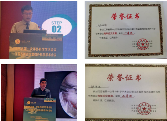 2021年6月,在江苏省第一次手外科学术会议暨江苏省第四次显微外科学学术会议上,刘桂谦获青年论文竞赛一等奖,胡俊生获二等奖。