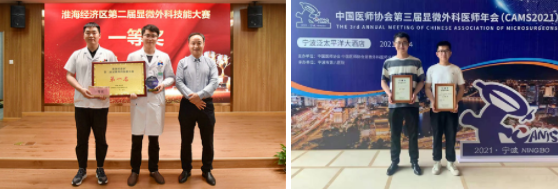 2021年5月,齐强、吴衡在淮海经济区第二届显微外科技能大赛中荣获一等奖。同年7月,在中国医师协会显微外科医生分会超级显微外科血管吻合大赛中,齐强获优秀奖。作为一名党员,齐强一直不忘初心,牢记使命,做好病患服务。