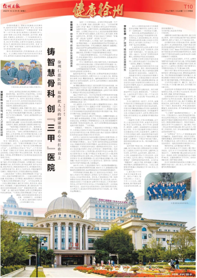 引进骨科机器人;创建省内规模最大的足踝外科;连续多年位居“诚信民营医院”首位;先后荣获“徐州市百姓最信赖的医院”、“中国最美医院”等称号……